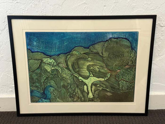 Large Light Abstract Painting in a Gild Frame by Wesley Johnson