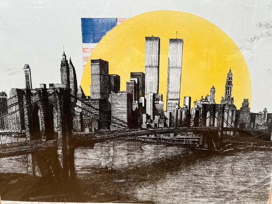 "Brooklyn Bridge Sunset" Woodblock Print by Lorenz