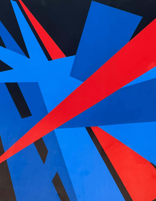 "Crash" Blue and Red Constructivist Lithograph