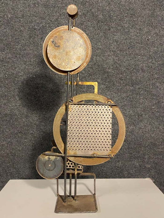 Vertical Brutalist Green and Metal Sculpture by Frank Cota