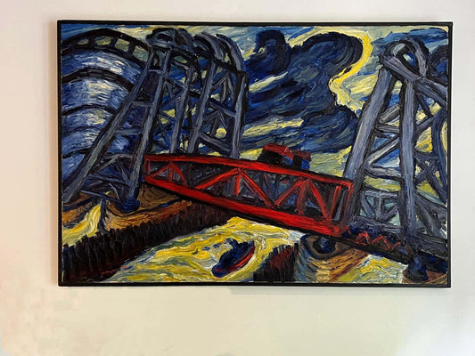 "Iron Bridge" Oil Painting on Canvas 1989 by Paul Weingarten