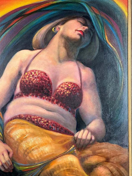 "Oriental Dancer Asleep" Large Acrylic Portrait on Canvas signed Lloyd