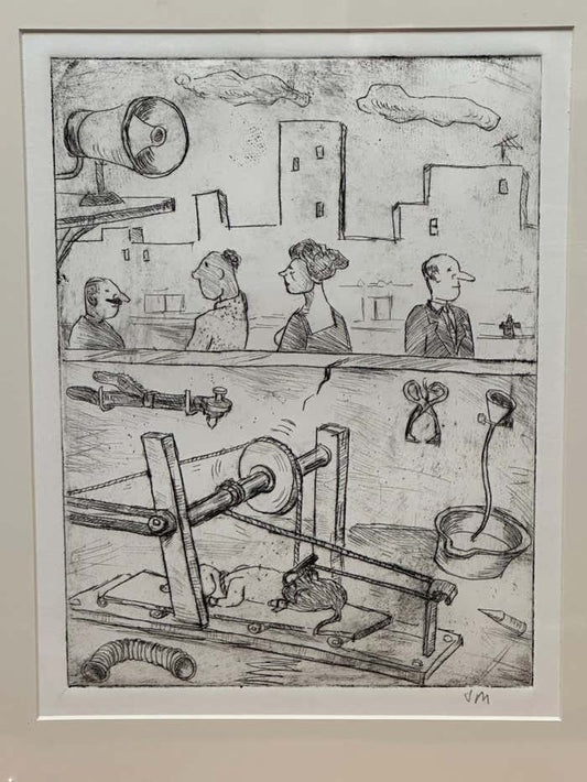 "Peer Group" Post-Modern Black and White Lithograph by Richard Proctor