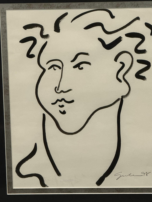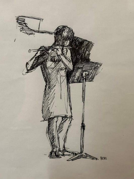 Trumpet Player, Ink Drawing by Joan Carl Strauss