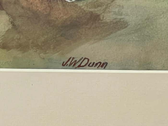 This framed watercolour is signed lower right by the American artist J.W. Dunn.