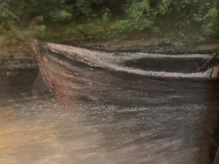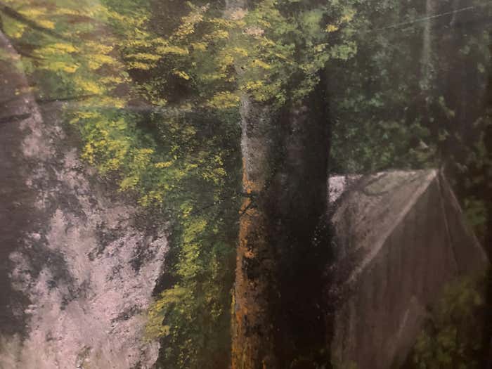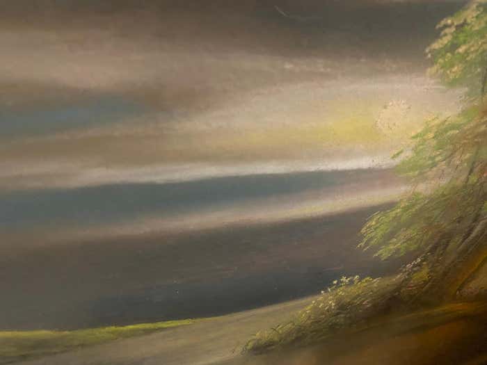This oil on canvas is part of a pictorial tradition in which the human figure is a discreet presence, suggested rather than shown. It evokes a relationship with the landscapes of the Barbizon school, and even more so with Corot, in its ability to capture an intimate, lived-in nature, shaped by memory and the gaze. Here, something resists: a more enigmatic depth, a refusal to give everything away.