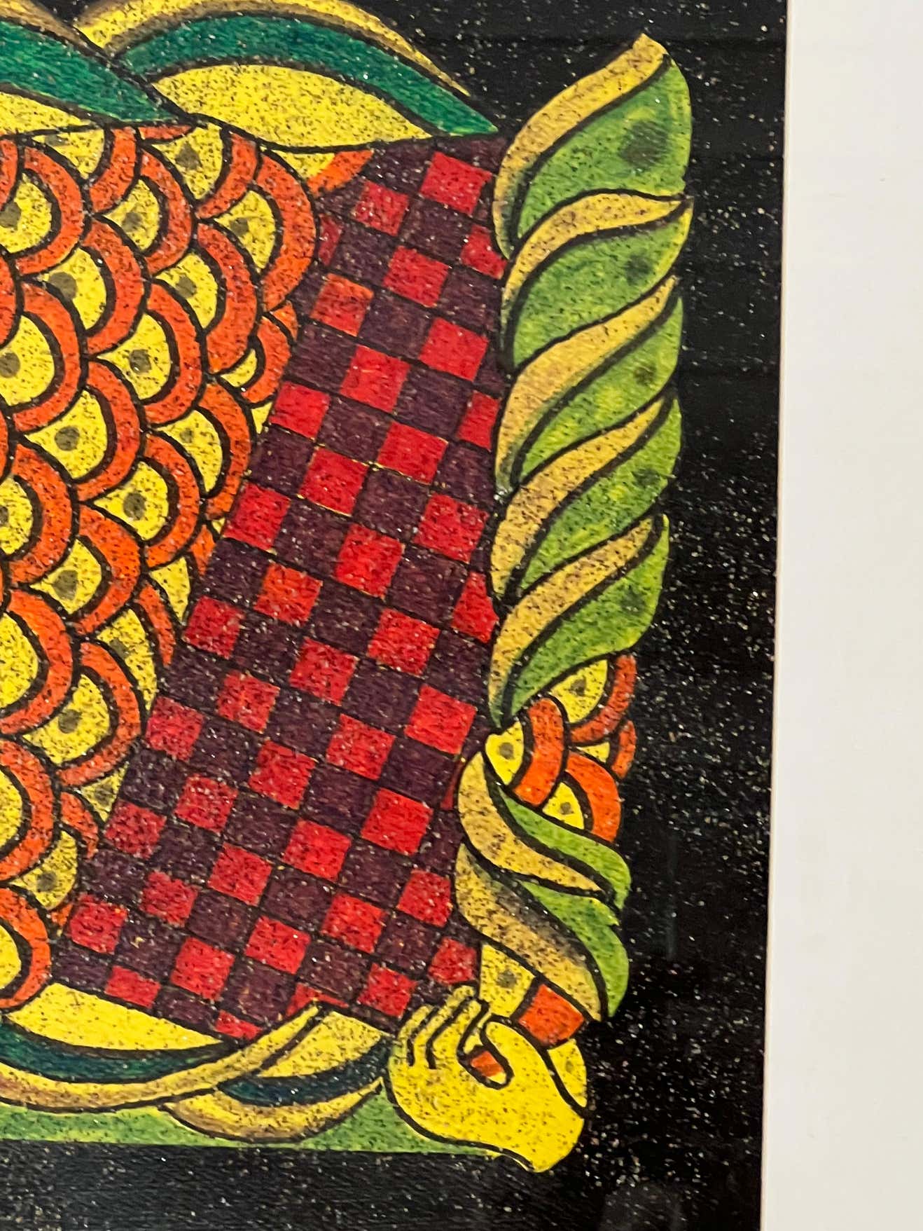 The texture is made with sand, similar to Williamson's other piece I have listed titled "Love at First Sight"