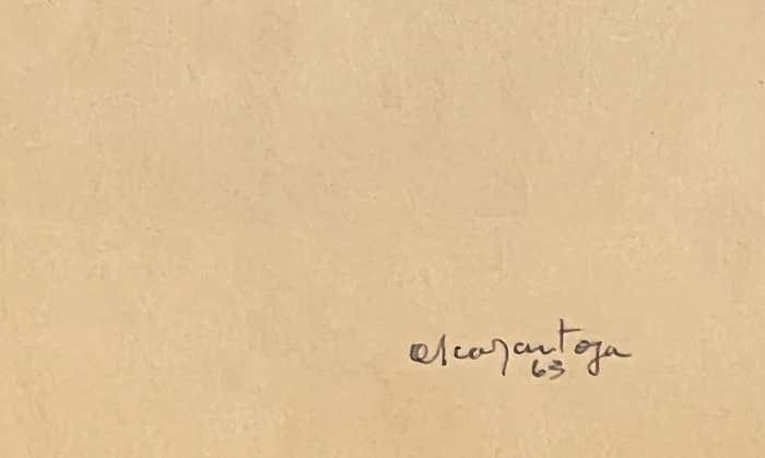 Original monochrome drawing from 1963 to be approached as a walk into a mental landscape. The painter's signature does not allow us to identify him. There is in this work a non-figuration that could almost recall enigmatic images of the Rorschach test without the symmetrical approach. We can find, reduced but present, a sense of verticality that would begin with the presence of an anchored base, the transparency of a distance, and the possibility of circulating among multiple planes. This drawing could serve as a portal to boundless imagination, inviting observers to delve into the intricacies of its lines, negative spaces, and structures. Within its depths, one can glimpse the emergence of a face, lacking the definitive outline that brings an oval to the shape, yet possessing the hints of a mouth, a nose, and a gaze.