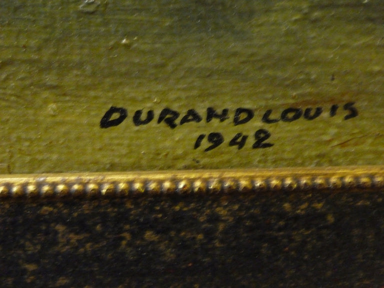 The painting is signed and dated "1942" in the lower right corner; recently re-framed in a handsome antiqued wood REFERENCE NUMBER: LU8258750752 PERIOD: 1942 CONDITION: Excellent. New custom frame MEASUREMENTS: Width: 23.5" (60 cm) Height: 30" (76 cm) COUNT: 1 MATERIAL: oil on board, antiqued wood frame CREATOR: Durand Louis COUNTRY OF ORIGIN: France