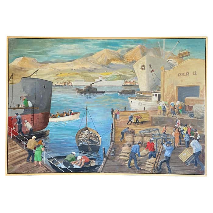 “Harbor Stories: The Pulse of Pier 12” illustrates a dynamic specific to narrative painting, embodying a visual crossroads of individual and collective stories within an effervescent maritime environment. The artist, who has voluntarily chosen anonymity, is a novelist in images and a master in the orchestration of hues, movements, and components. Looking more closely, the artist's technique deserves significant study. The application of colors, the subtle transition from shadow to light, and the strokes create a dynamic feeling of enthusiasm, with the appearance of a mountain in the background. The not at all randomly chosen hues contribute to building a particular perception of this port scene.