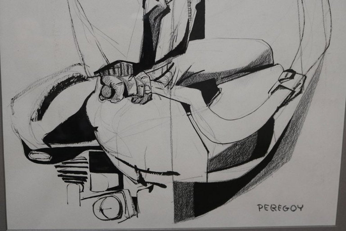 Mixed-Media Drawing of a Motorcyclist by Walter Peregoy