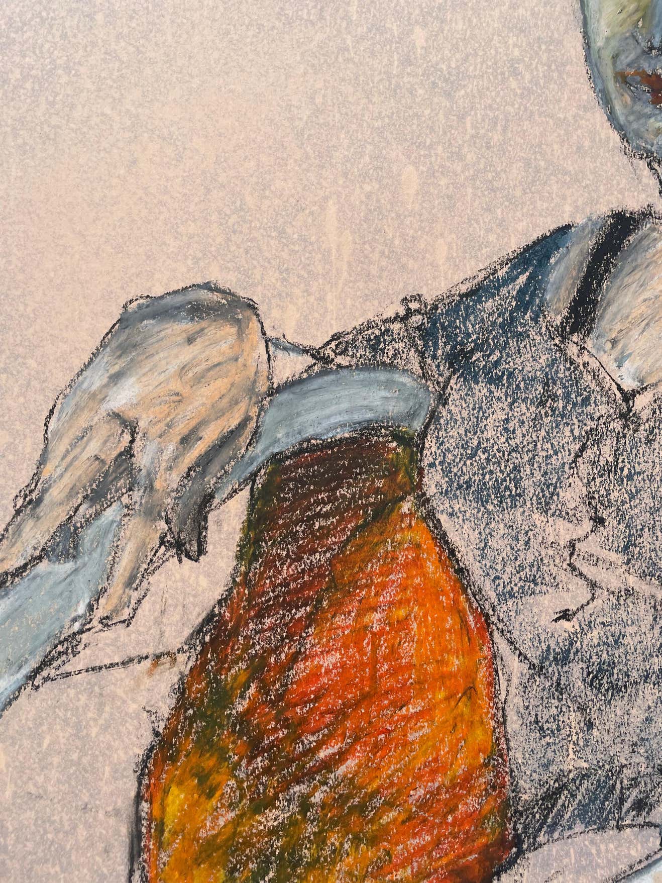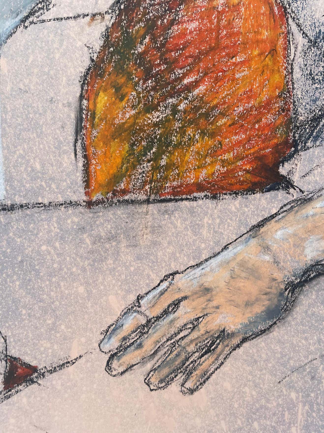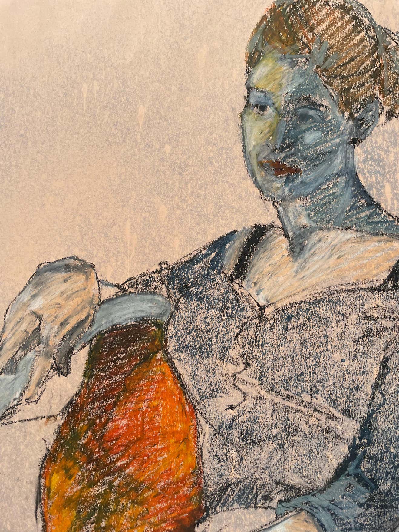 Judith Minna Pike December 19, 1942- October 18, 2019 This portrait made using a combination of unblending and blending pastels gives this work greater variety, softer edges, and more unified areas of light and shadow. The woman is seen casually sitting in a vibrant orange chair. I love the complementary color palette used by Pike in this piece. Judy taught Spanish at Lincoln High School for a short time after college, but art would become her life-long passion. She experimented with clay and reiki pottery for several years but eventually transitioned to watercolor, oil painting, mixed media, and figurative drawings for the majority of her career. In an artist’s statement around one of her solo shows featuring a group of mixed-media figurative pieces, Judy discussed her creative process. 'We are all more than one thing,’ said Judy, who encourages her models to play with different personas when they pose. ‘People are complicated and that’s what I try to capture in my work. Gestures, features, mood, clothing, choice, and facial expressions make a model unique and drawing becomes a conversation between the model and the artist. As I add layers, my goal is to clarify and deepen that conversation, revealing the model as an individual, not just a type.’” An award-winning artist and juror, Judy’s work often drew on inspiration from family photos, both from her childhood and later years. Her art has been exhibited in several solo and group shows, including four featured exhibitions at the San Diego Institute of Art. In 2003, she was featured in Watercolor Magic Magazine Yearbook “Ones to Watch.” Judy co-founded the Figurative Inspiration Group (FIG) in 2006, with the aim of creating a space for a unique collaboration between models and artists. She was an active member of the West Coast Drawing Group and curated a monthly art show at Adam’s Avenue Grille for several years.
