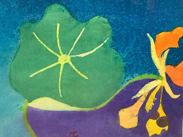 With this colorful and minimalist watercolor by the artist Jae Carmichael, we are immersed in the vibrant world of Fauvism, as championed by Henri Matisse. Color above all, and perhaps even more than drawing, is a liberation," serves as a guiding principle in understanding this piece.