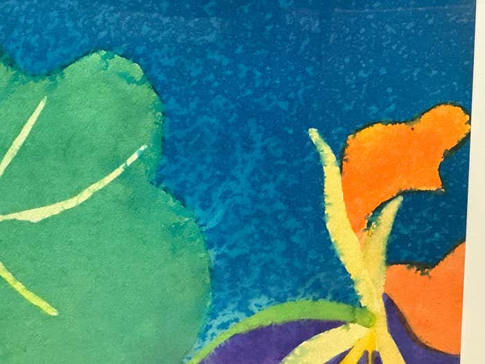 Whether portraying the distinctive petals and pistils of squash blossoms or capturing the essence of simpler floral motifs, the impact of color reigns supreme. In this piece, the subject matter seems to fade into the background, overshadowed by the sheer force and intensity of the artist's chromatic exploration.