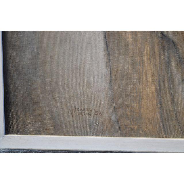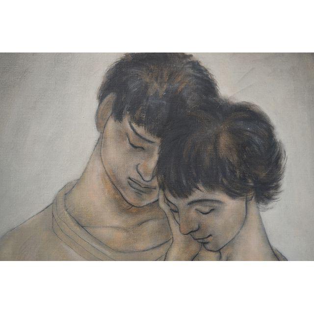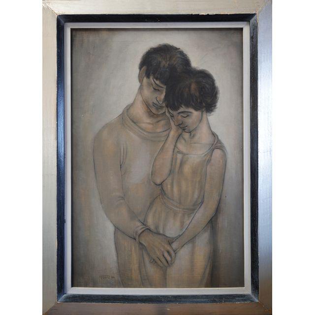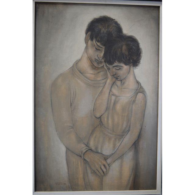 This romantic feeling print of two young lovers is finished in thin washes of earth tones. Signed "Micheal Martin '58".