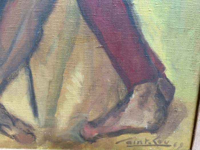 This painting is dated 1969 and signed by the artist Saint-Lou.